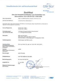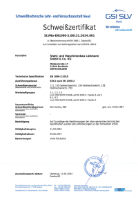 Zertifikat der Konformität der WPK für Stahltragwerke nach EN 1090-2